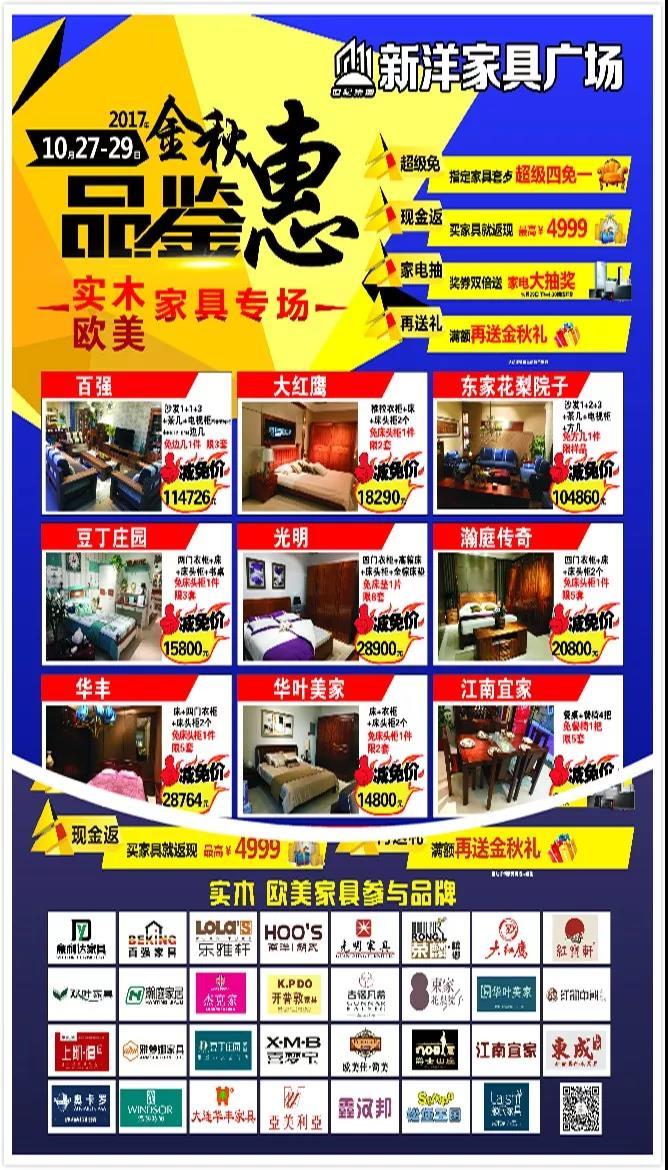 感谢所有光临新洋家具广场的顾客,2018年新洋家具广场还会举办更多更实惠、更优质的活动,让每一个顾客都能买放心、买舒心、买称心。在此祝福大家新年快乐,万事如意,天天开心。新洋家具广场,2018期待您的到来!