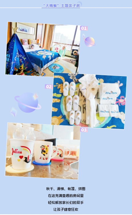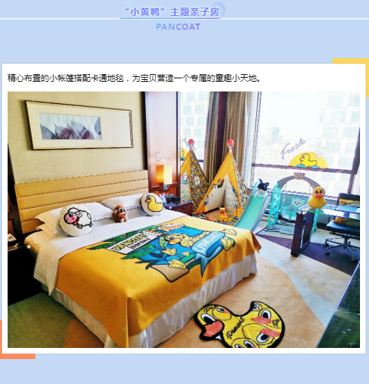 这次,天津滨海喜来登酒店为带崽的爸妈们准备了主题亲子房,让您在酒店就可以和宝贝一同探索大嘴猴和小黄鸭的童趣时光。