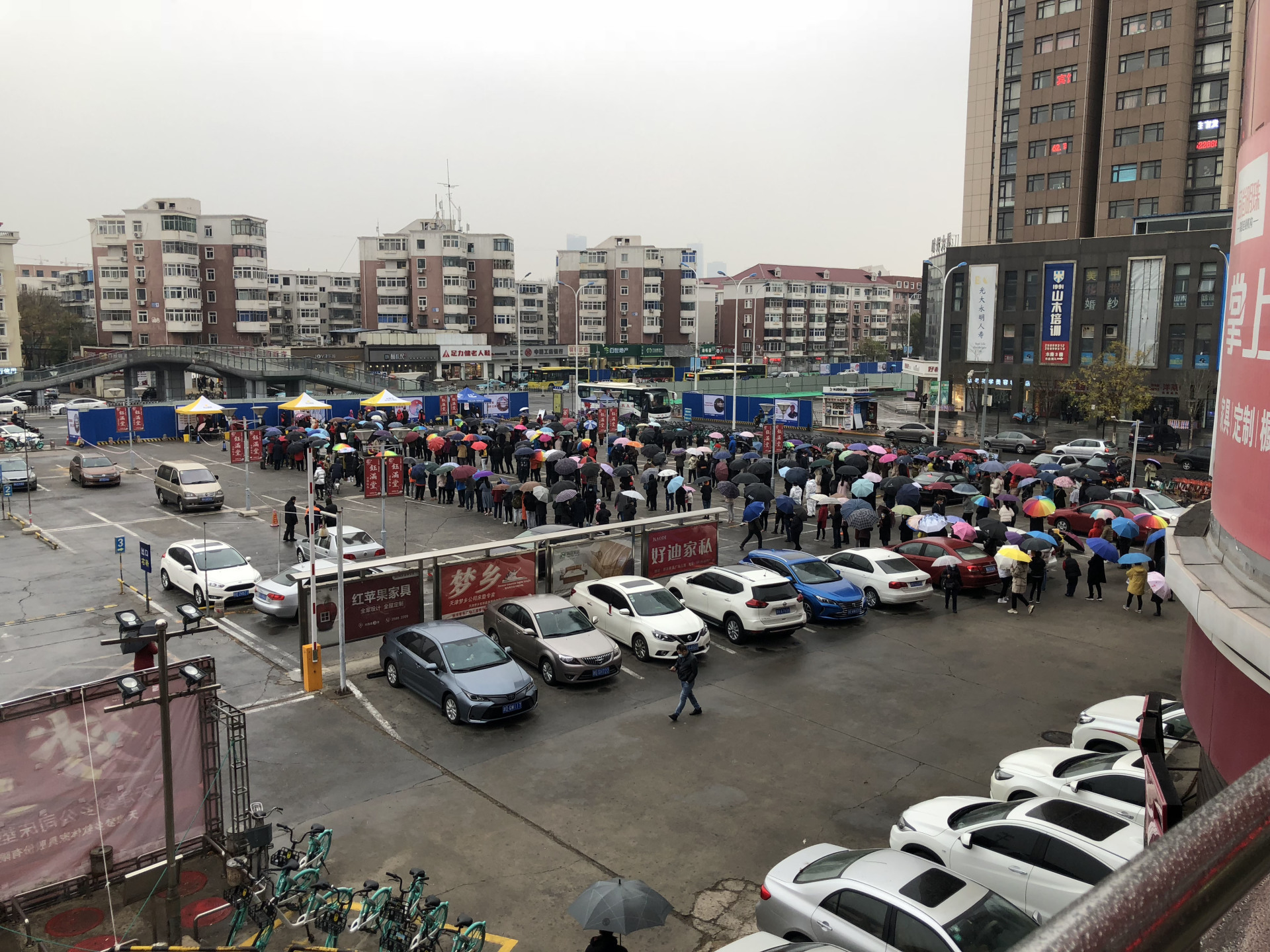 在新洋家具广场核酸检测点,虽然下着雨,室外温度很低,但现场检测秩序井然,所有候场和进场检测的居民都听从现场指挥调度,按照指示标记和线路有序进行检测。现场管理组、核酸检测组、组织协调组和后勤保障组工作人员默契配合,确保了现场检测工作整个流程顺利进行。