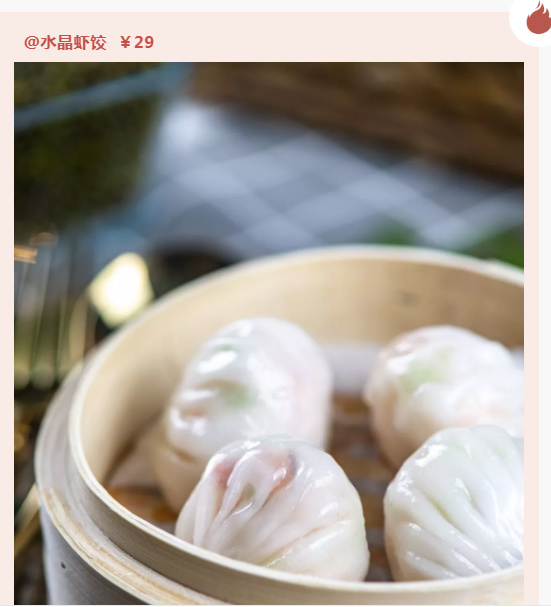 水晶虾饺是港式茶餐厅里的经典小吃,在这里自然也是稳坐头牌。虽说一笼只有四小只,每一个却都是内涵丰富,虾肉货真价值,皮薄薄的,晶莹剔透地泛着光。不少吃货看到它的那一刻,口水也呼之欲出。