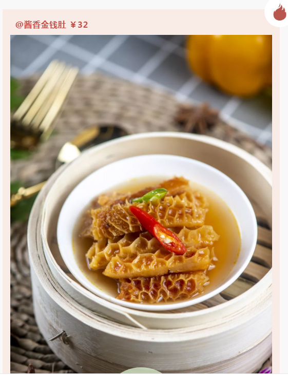 牛杂作为地道的小吃,在这里的出品更为出色。酱香金钱肚烹煮至软糯,牛味够,重点是不韧而且有嚼劲,每一下咬合都脆弹有汁。