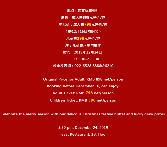滨海喜来登 | 春节不打烊 营业时间早知道!