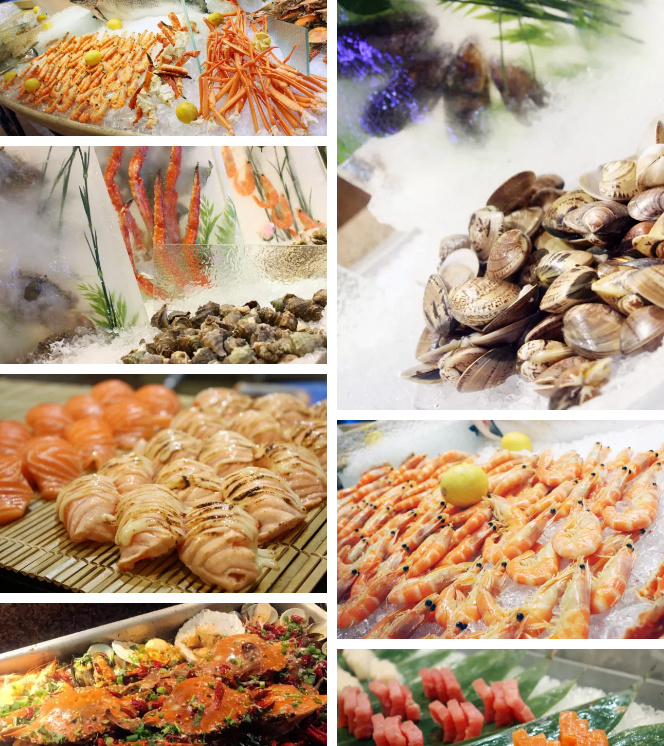 大螃蟹、雪蟹、海虾、三文鱼、金枪鱼、花蛤、大海螺、海虾、生蚝、青口贝、还有我们此次海鲜节重磅推出的“海鲜大咖”...
