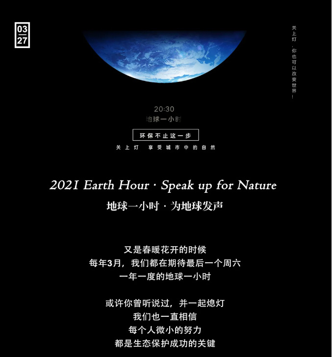 Earth Hour 地球一小时 | 为地球发声,线上特别活动